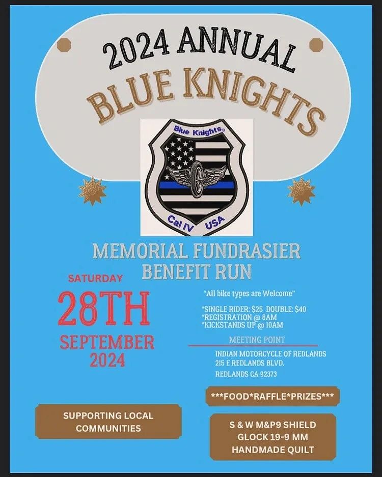 Blue Knights California Chapter IV, was established in 1990, and is a chartered chapter of Blue Knights International Law Enforcement Motorcycle Club, Inc. Our chapter represents the San Bernardino-Riverside region.
